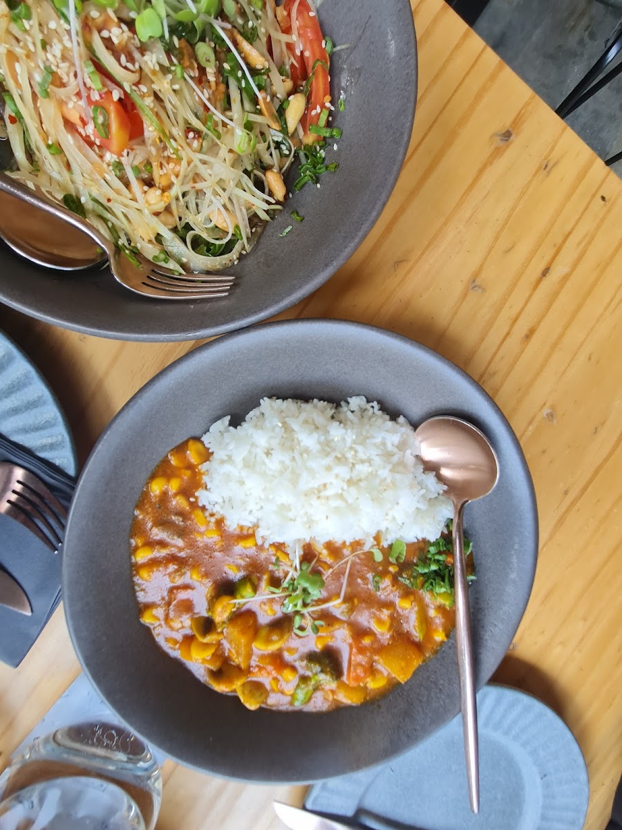 For those seeking something unique, Nua-cafe's Thai Red Curry Chicken (₹644) and the Thai Red Curry Veg (₹585) present an aromatic blend of herbs and spices that is absolutely tantalizing—best enjoyed with the basil garlic rice that comes alongside.